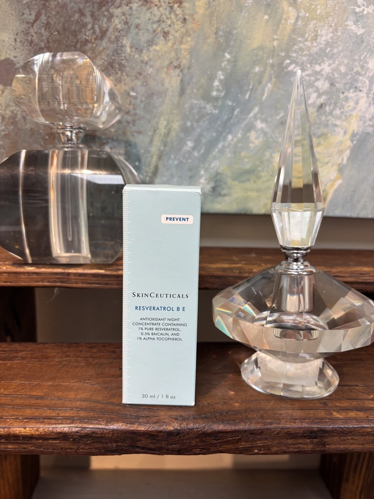 Resveratrol B E is a first-of-its-kind night face serum that combines a maximized concentration of 1% pure, stable resveratrol, synergistically enhanced with 0.5% baicalin and 1% pure vitamin E (alpha-tocopherol) for optimized anti-aging antioxidant performance. This patented antioxidant cocktail neutralizes free radicals, supports the skin’s natural antioxidant defenses, and reveals visible radiance and firmness